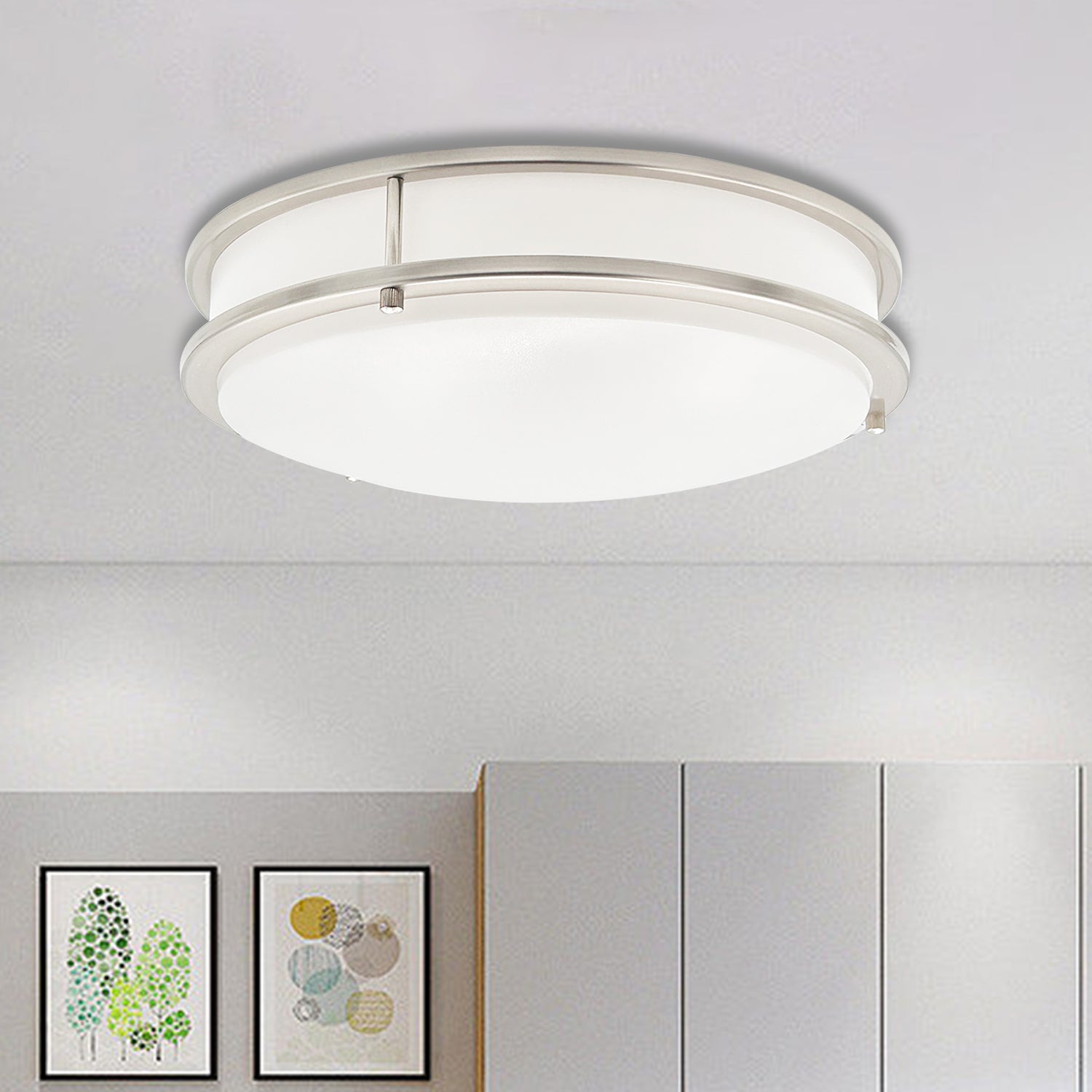 14-in Double Ring Brushed Nickel Integrated LED Flush Mount Light