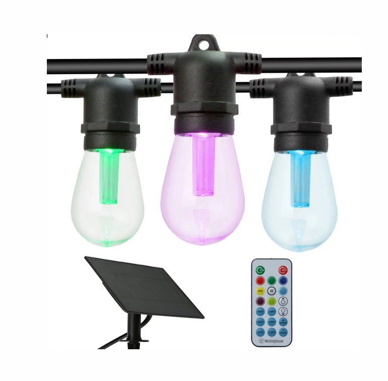 Add vibrant, customizable lighting to your outdoor spaces with this 36-foot Westinghouse solar string light, featuring RGBW multi-color options and versatile settings for any occasion.